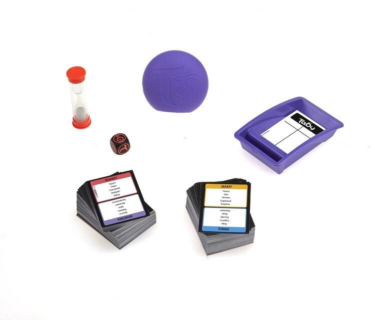🔹Комплект: 1000 карточек, пищалка для слов-табу, кубик, блокнот, лоток для карточек, песочные часы, правила игры.