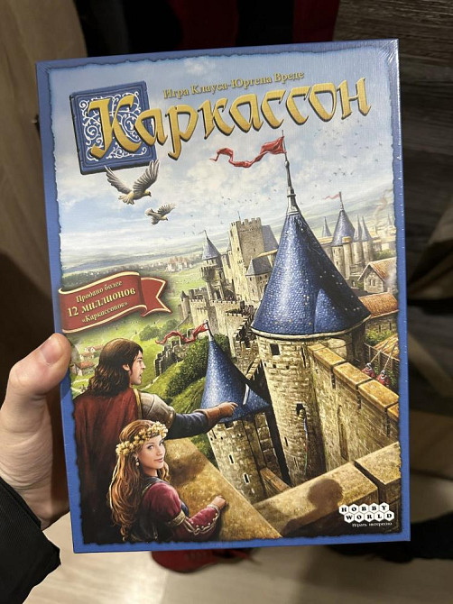 Не распакована! Настольная игра Каркассон (2019). "Каркассон" - настоящий шедевр в мире настольных игр. Уже многие годы объединяющий за столами людей всех возрастов по всему миру. Игра стала лауреатом множества выставок и премий, а также послужила основой для многочисленных дополнений и альтернативных версий. Ход за ходом создавайте уникальную, каждый раз новую, карту средневекового княжества, выкладывая квадраты с изображением городов и монастырей, дорог и полей. А ваши верные подданные: рыцари, монахи, разбойники и крестьяне - помогут вам расширить свое влияние и получить победные очки. Ключевые особенности игры: Игра "Каркассон" стала лауреатом множества выставок и премий, ведь уже многие годы в нее играют люди всех возрастов по всему миру. Тема игры - освоение территорий вокруг Каркассона, одного из крупнейших замков, а позже и городов Франции. Игроки исполняют роли феодалов, берут под контроль дороги, захватывают пахотные угодья, строят города и монастыри. Прекрасно подходит для игры вдвоем. Обновленная версия содержит дополнения "Река" и "Аббат". Комплектация: - 72 квадрата местности, - 1 дорожка подсчета очков, - 40 фишек подданных, - правила игры, Состав дополнений: - 5 фишек аббатов, - 12 квадратов с рекой.