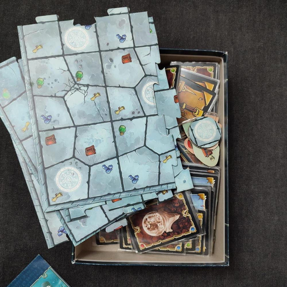 Состояние хорошее, все карты в протекторах. Рисунок поля немного не совпадает - но так было изначально: заводской брак, играть абсолютно не мешает.