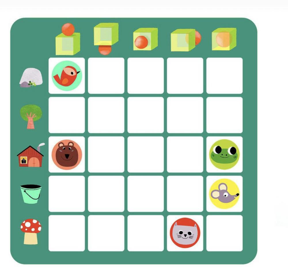 Великолепная новинка от Djeco. Настольная игра Топологик от французского производителя игрушек Djeco - превосходная игра на логику, которая надолго увлечет малыша. В набор входят красочные интересные карточки, а также игровое поле с фишками. На фишках изображены персонажи, которые изображены на карточках. Смысл игры состоит в том, чтобы расположить фишки на игровом поле согласно положению животных на карточке. Малышу будет очень интересно рассматривать яркие забавные изображения на карточках, определять где находятся персонажи и раскладывать фишки на игровом поле. Размер игрового поля - 20 х 20 см. В наборе 20 карточек с заданиями, 1 деревянное игровое поле, 5 фишек с изображениям животных. Игра прекрасно развивает логическое мышление и сообразительность, тренирует моторику детских ручек и учит малыша внимательности и усидчивости. Набор продается в красивой коробке и идеально подходит для подарка. Все детали изготовлены из высококачественных материалов.