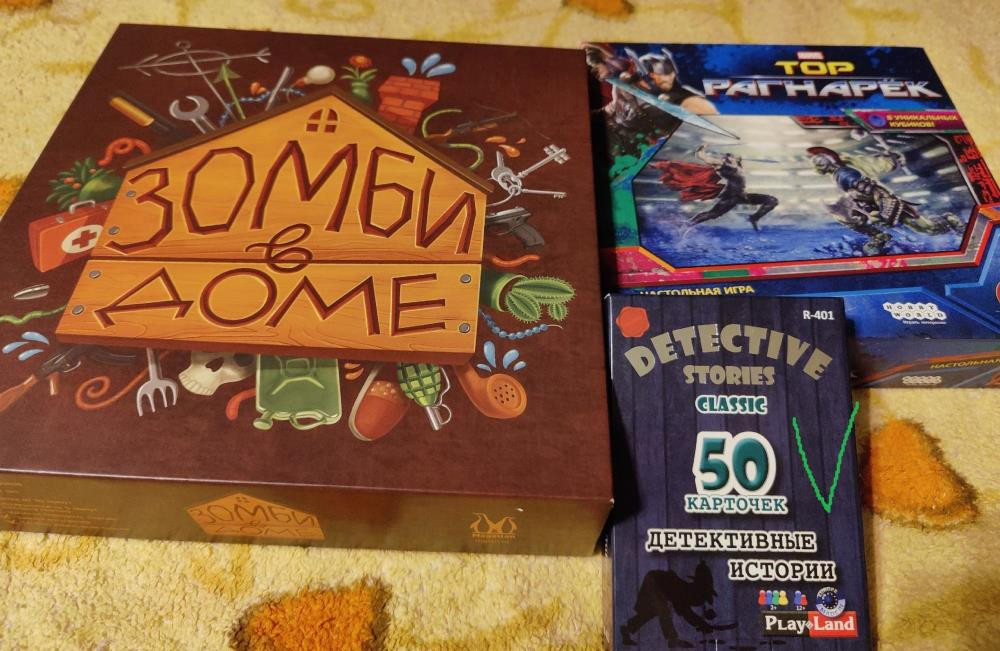При покупке сразу двух игр Зомби в доме и Тор Рагнарек в подарок отдам третью карточную игру Детективные истории Classic.