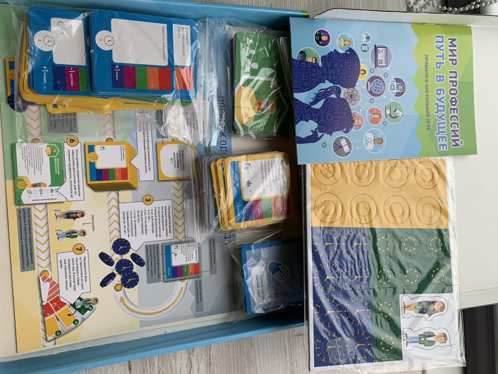 Настольная игра-симулятор «Мир профессий. Путь в будущее». Возраст 11+ для 2-6 игроков. Учит работать в команде. Эффективно общаться с разными людьми. Придумывать новые идеи. Выбирать лучший из нескольких вариантов. Уважать чувства других людей и лучше понимать их эмоции.