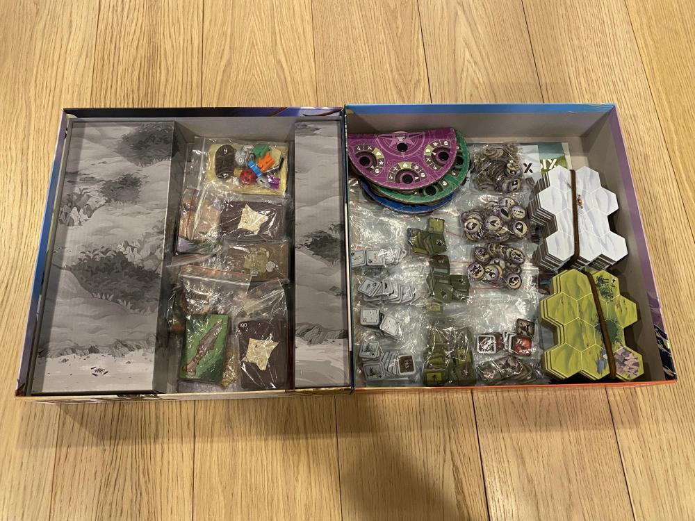 Для тех, кто уже проходил какие-то сценарии этой игры: в этой коробке лежат кампании «Остров 1, 2, 5» и «Заснеженные горы 3, 4, 5»