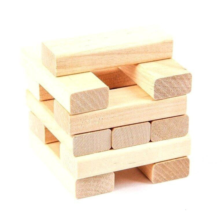 Количество деревянных брусков в комплекте: 54 штуки + уголок