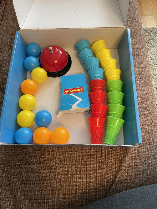 Отличная увлекательная игра от Бондибон,не хватает двух шариков,но без них смело можно играть если играете 2-3 человека.Карточки на уровень от 3,5 лет и старше.Смело можно им 3-х лет-изучать цвета,развивать моторику,логику,мышление и тд.