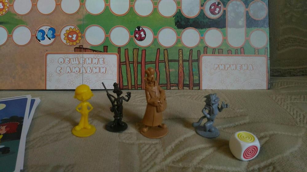 Настольная игра с фигурками героев мультфильма(дядя Фёдор,кот Матроскин,Шарик и почтальон Печкин).Также есть игровое поле,карточки и кубик.инструкция прилагается.для возраста детей 4-7 лет.Состояние отличное.