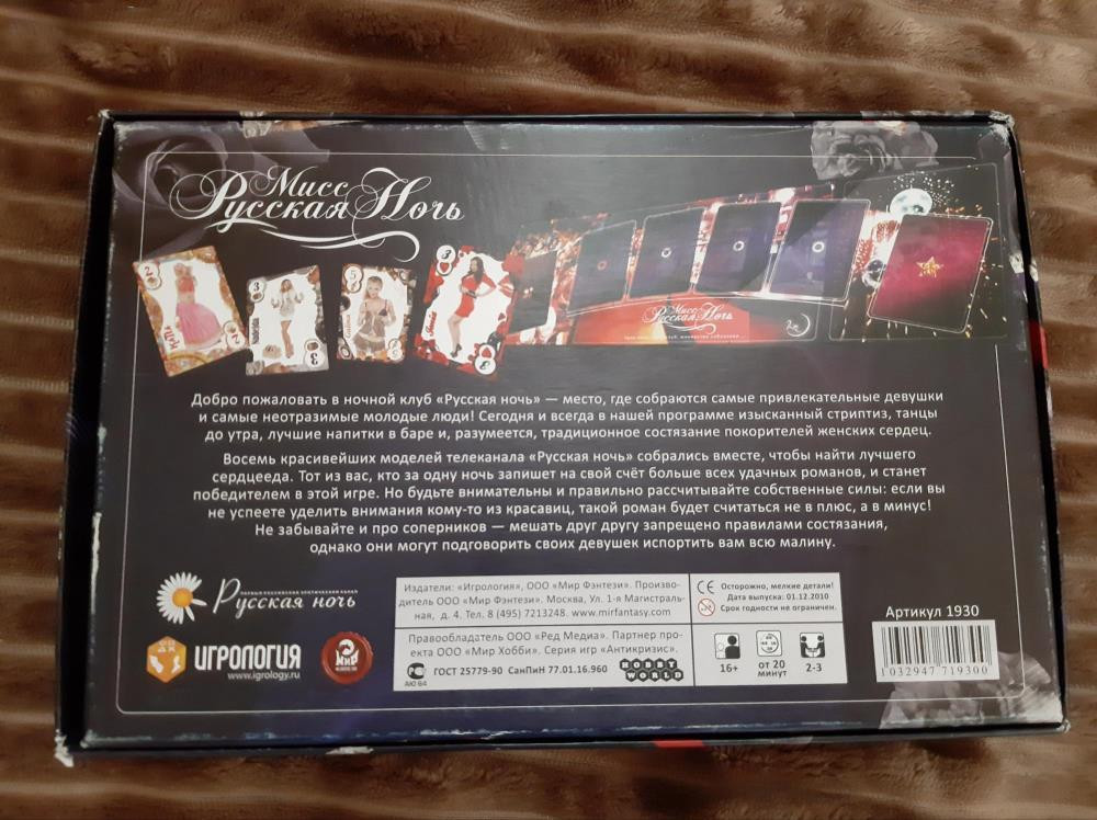 Настольная эротическая игра для взрослых "Мисс Русская Ночь". Состояние хорошее. Играли всего пару раз.
