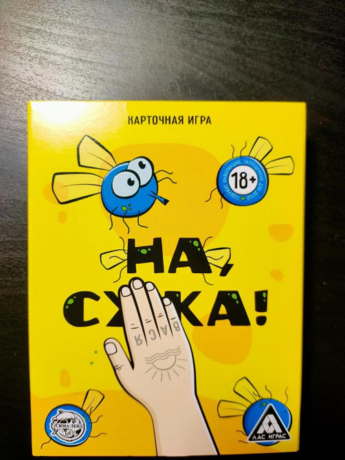 Точно, в игре ещё есть карточки с надоедливой мухой и фантами. Если один из игроков вытянул эту карту, то все участники должны как можно быстрее хлопнуть ладошкой по колоде, громко выкрикнув при этом название игры.