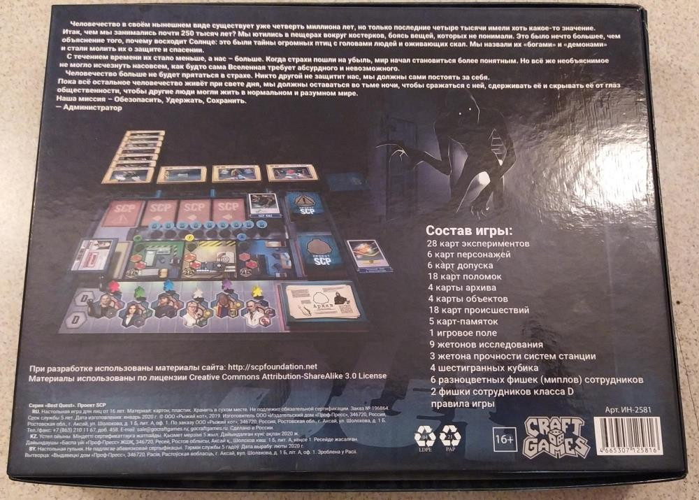 Редкая настольная игра "Проект SCP"