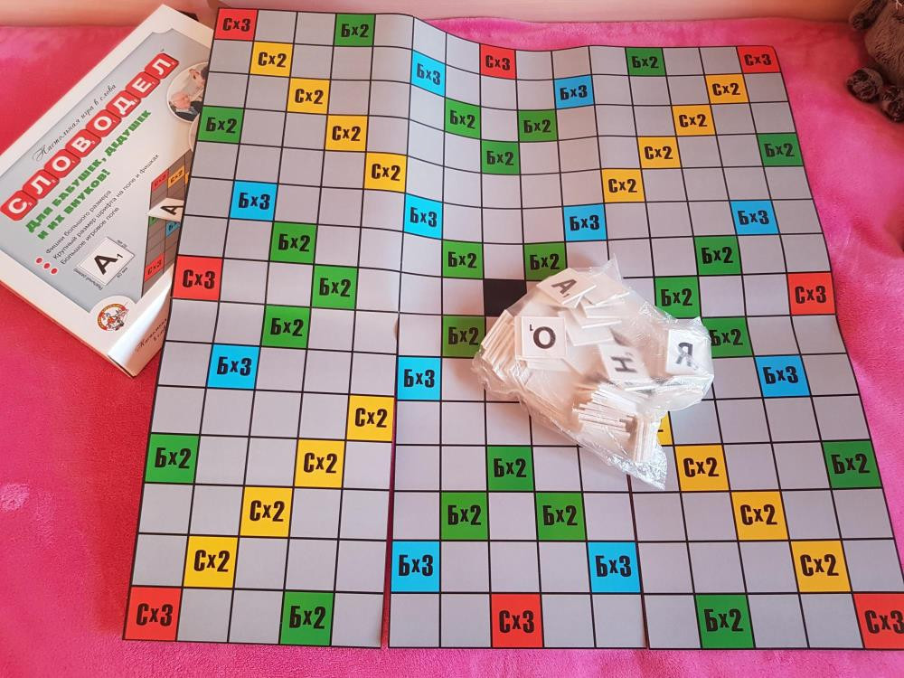 Совершенно новая настольная игра "Словодел" с большим игровым полем и крупными фишками-буквами.
