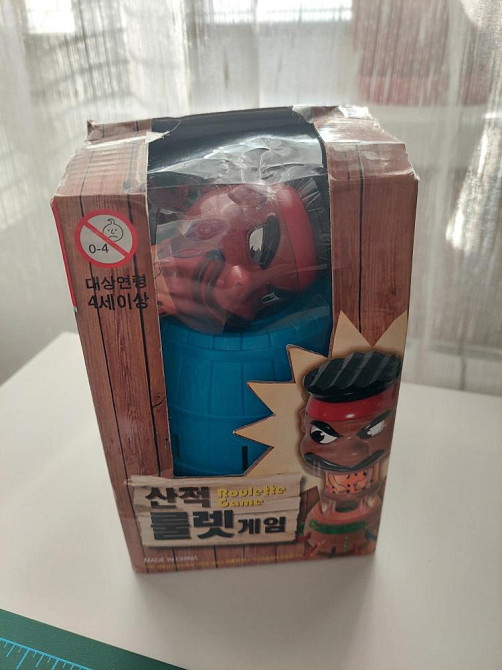 Настольная игра рулетка, суть - вставляешь мечи в отверстия, проигрывает тот, у кого при этом выскакивает голова пирата