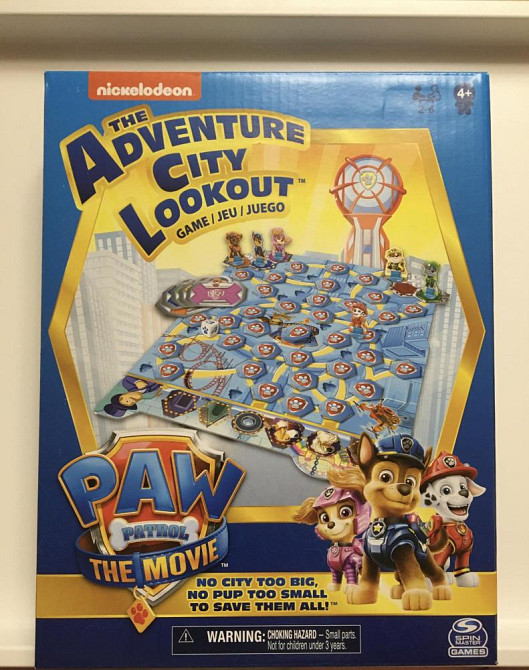 Очень популярная в Европе Настольная игра «Щенячий патруль» выпущена к мультфильму «Щенячий патруль в кино 2021». Привезена из Великобритании. Игра новая.