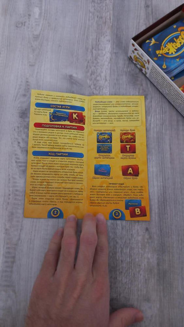 У вас есть две закрытые стопки: категории и буквы. Игрок берёт карту категории, выкладывает перед всеми на стол, например, «Вещь дороже миллиона рублей». Затем быстро выкладывает карту с буквой и за одну минуту все стараются придумать слово. Например, на «У». Сможете? Кто первый вспомнил — забирает себе открытую карту категории, чтобы в конце партии получить за неё очки. Для отсчета времени можно использовать песочные часы на минуту или таймер в смартфоне. Если слово никто не смог придумать за выделенное время, можно сбросить карту буквы и выложить новую.