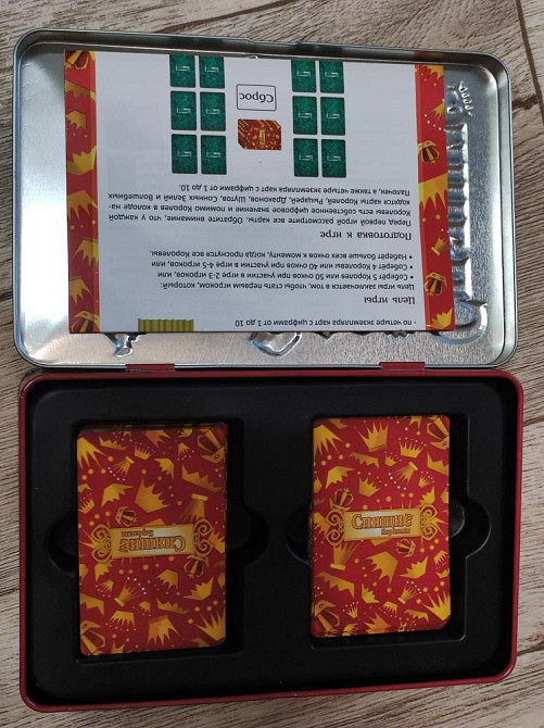 Делюкс версия настольной игры Спящие королевы поставляется в металлической коробке. Проснитесь и играйт? Королева Роз, Королева Тортов и десять их ближайших подруг заснули, поддавшись сонным чарам, и именно вам предстоит разбудить их. Используйте сообразительность, память и навыки сложения, чтобы стряхнуть с дремлющих знатных особ их королевский сон. А помогут вам в этом Короли: Огненный, Шахматный, Черепаший… Сыграйте рыцаря, чтобы украсть Королеву у другого игрока или положитесь на ловкость рук шута. Но берегитесь сонных зелий и коварных драконо? В крайнем случае примените волшебную палочку. Победа достанется тому, кто разбудит больше всех короле? В состав настольной игры Спящие королевы Делюкс входит: 79 карт и правила настольной игры. Время игры: 10-15 мин Мин. возраст: от 7 лет Кол-во игроков: 2-5