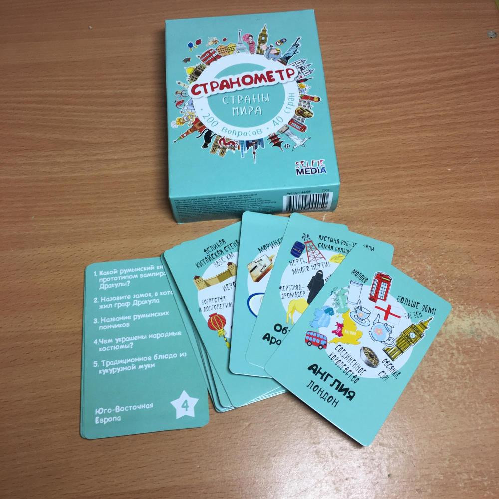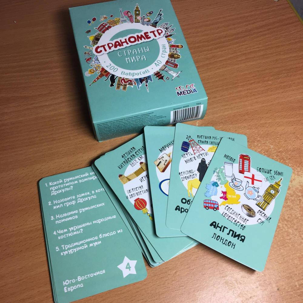 Настольная карточная игра Страны мира позволит познакомиться с другими государствами, не покидая собственного дома. На одной стороне карт перечислены интересные факты о странах. А на другой стороне - вопросы, основанные на этих фактах. Победителем станет игрок, ответивший правильно на большее число вопросов. В комплект настольной карточной игры включены 40 карт (200 вопросов).
