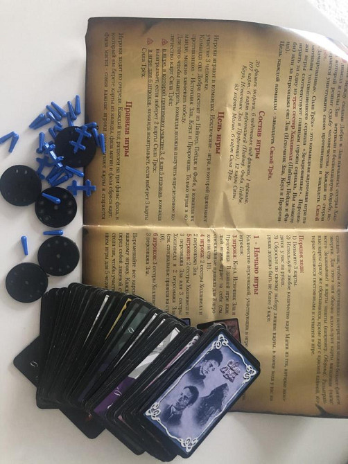 Карточки, правила, фишки, все в наличии. Нет коробки.