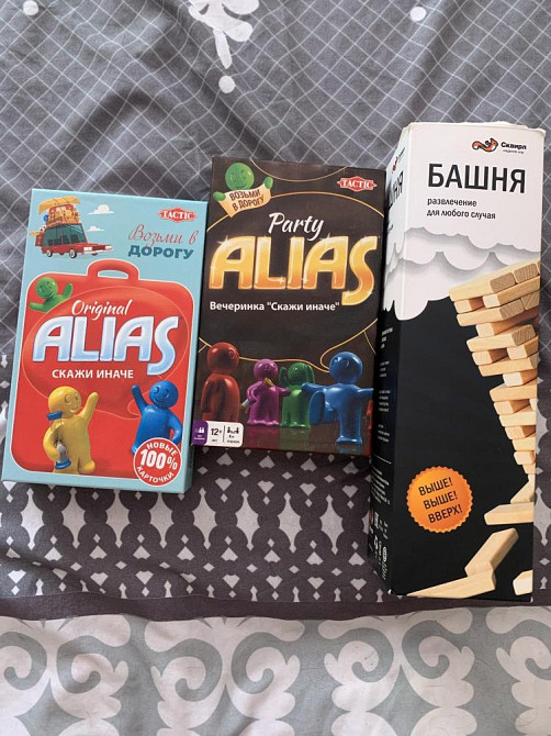 Цена за все три игры. Игра башня повреждена верхняя часть коробки. Alias дорожный!!