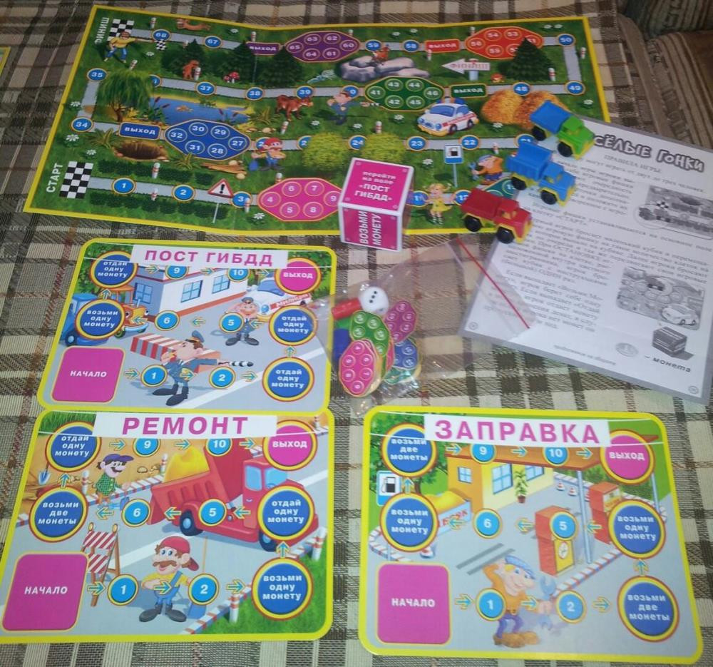 Для любителей машинок. Две игры в одной коробке. В отличном состоянии. В каждой игре одно основное поле и три дополнительных, фишки в виде машинок и кубики. Сначала можно играть только с основным полем, а затем усложнить игру дополнительными.