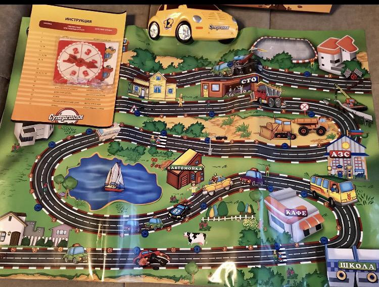Яркая настольная игра "Супер-гонки" привлечет внимание не только ребенка, но и взрослого и позволит весело и занимательно провести время. Набор состоит из игрового поля, выполненного в виде плаката с изображением городских улиц и зданий, трех картонных фишек в виде автомобилей и специального волчка, с помощью которого определяется дальность хода. Игроки, по очереди крутя волчок, делают ходы, стремясь как можно быстрее попасть к финишу. Красочная игра развивает воображение, усидчивость и координацию движений ребенка, стимулирует дух здорового соперничества.