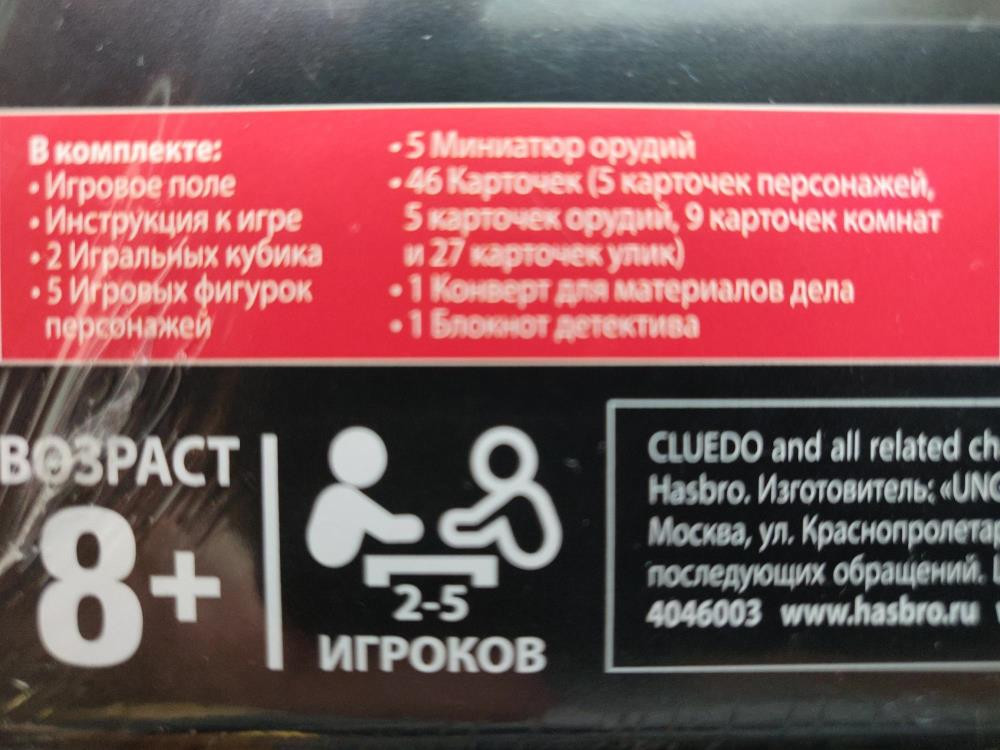Классическая детективная игра от Hasbro & Unga для 2-5 игроков. Рекомендуемый возраст от 8 лет.