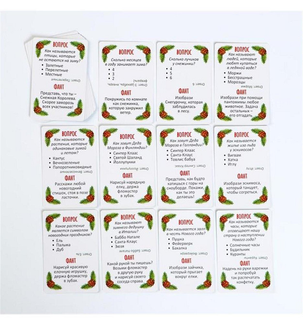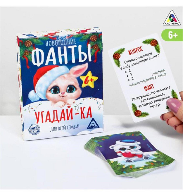 В этой коробке вас ждет 20 вопросов зимней викторины и столько же веселых фантов.