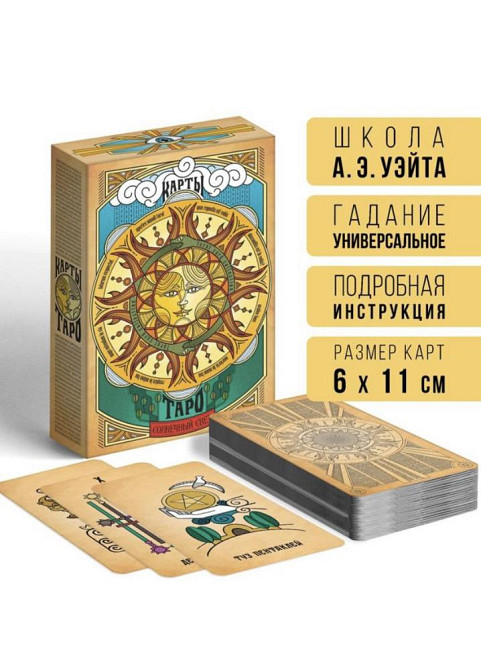 Будущее в ваших руках!Мы — сами творцы своего будущего. Если мы знаем, что ждёт нас сегодня, то можем быть уверены и в завтрашнем дне. Карты позволят заглянуть в ближайшее будущее. Это простая колода, с которой может работать даже тот, кто только начинает знакомство с миром Таро.Как работать с картами Таро?Используйте карты Таро только тогда, когда чувствуете максимальное расслабление и комфорт. Вас ничего не должно отвлекать.Чётко формулируйте вопрос, на который хотите получить ответ. Избегайте пространных формулировок, излишне длинных и запутанных.Используйте Таро только в тех случаях, когда нужно решить конкретную проблему. Не гадайте по пустякам и от скуки.В инструкции предлагается несколько раскладов, которые помогут получить ответы на интересующие вас вопросы.Внутри вы найдёте:78 карт,инструкцию.Получите ответы на интересующие вопросы!
