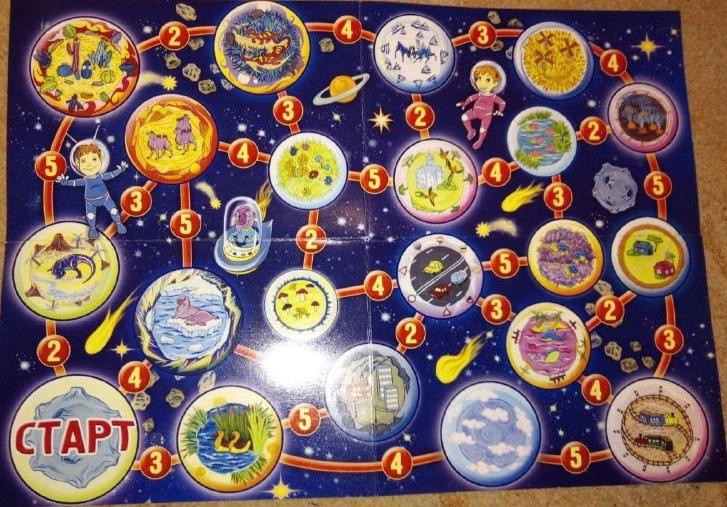 В остальном же это простая экономическая игра-бродилка с кубиком и фишками. Игроки перемещают свои фишки по клеткам игрового поля, берут на планетах пассажиров и доставляют их на родные планеты. От того, насколько хорошо игрокам удается повторять их диковинные речи, зависит плата за проезд. Если ребенок не ошибается и произносит чистоговорку правильно, то он получает больше денег и скорее заработает 10 монет, необходимых для победы в игре.