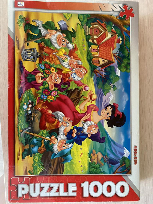 Пазлы белоснежка и семь гномов 1000 шт. Потеряно 1-2 шт. А так пазлы очень яркие, красочные, интересно собираются