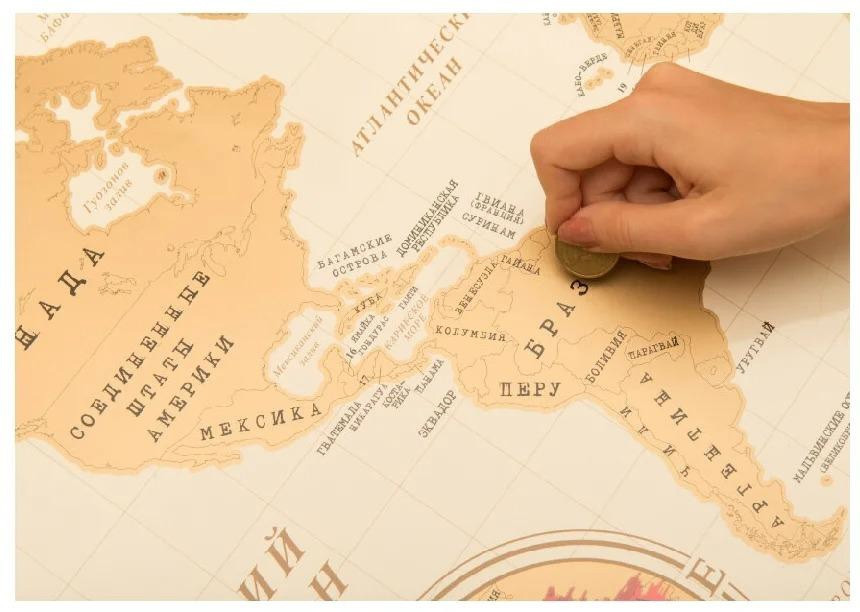 Магнитная карта мира с возможностью отметок посещения разных стран. Подарочный набор.
