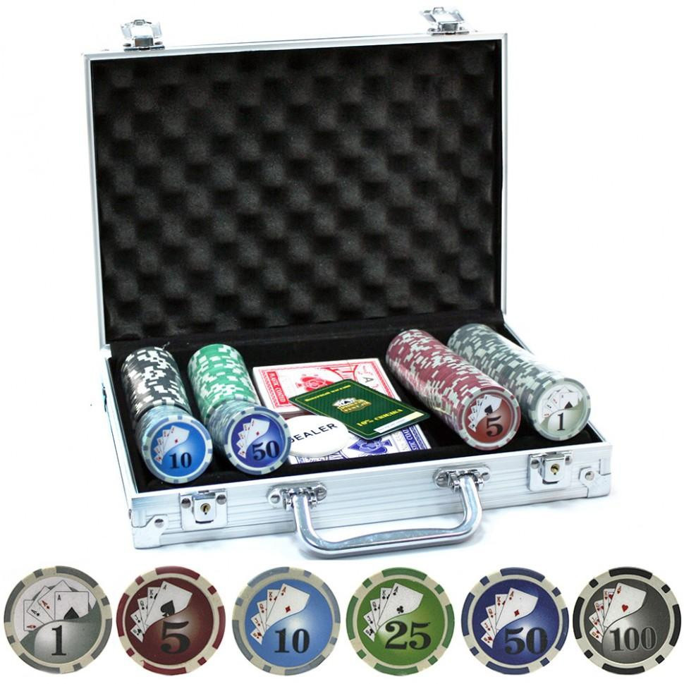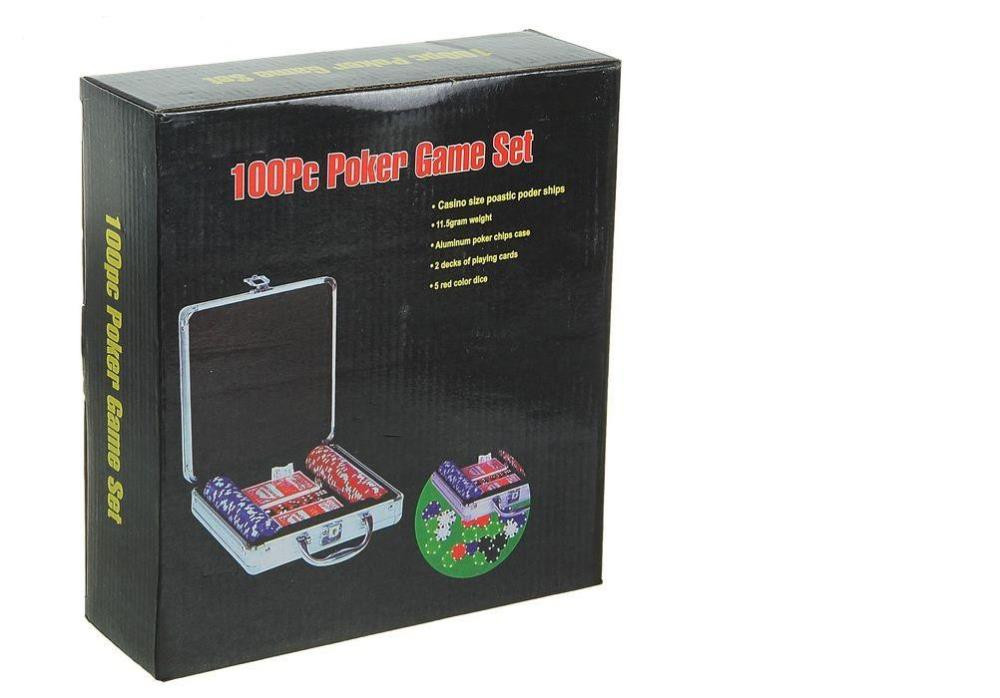 * 100 покерных фишек с металлическим сердечником внутри, весом 11,5 грамм