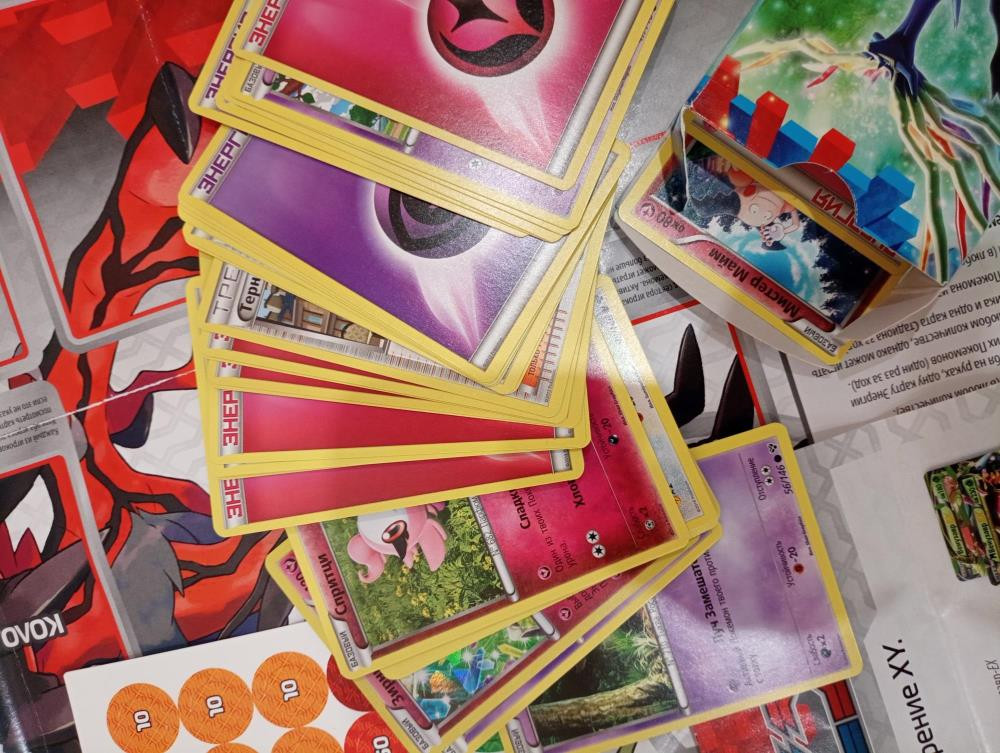 Продам коллекционную карточную игру Покемон. Тематическая колода «Выносливая Жизнь». Набором не играли, только распаковали, к сожалению, коробка не сохранилась, порвали.