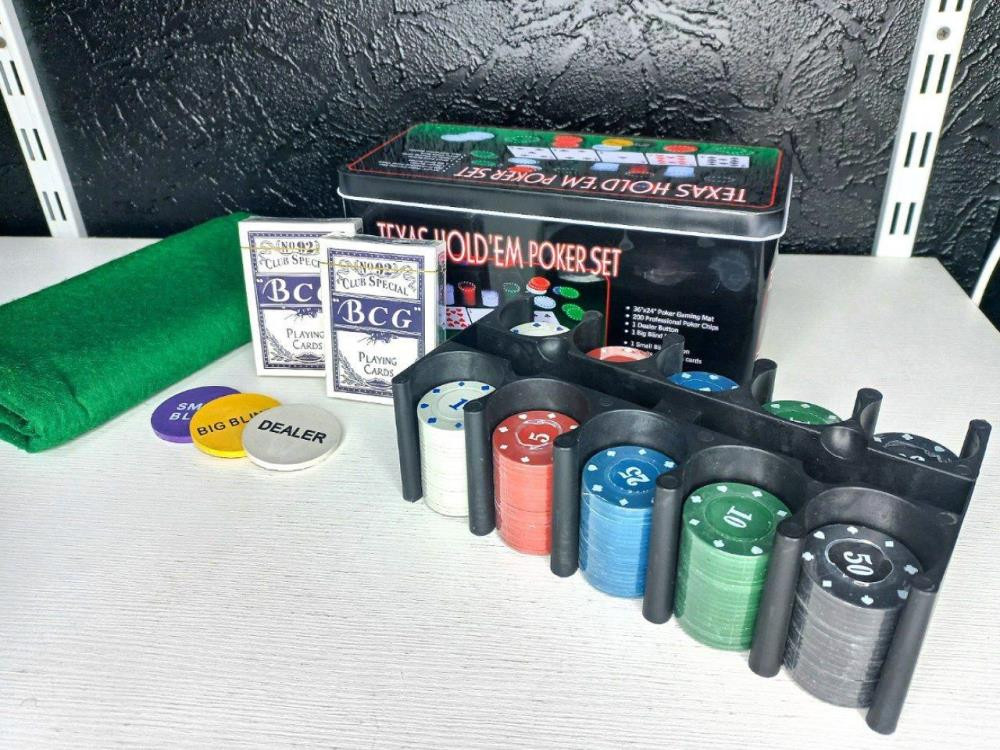 Продам 🔥ПОКЕР НАСТОЛЬНАЯ ИГРА 200 ФИШЕК🔥 КАРТЫ ВЫПОЛНЕНЫ ИЗ КАЧЕСТВЕННОГО АБС ПЛАСТИКА! НАСТОЯЩЕЕ ЗЕЛЁНОЕ СУКНО В КОМПЛЕКТЕ! ВСЁ ЭТО УПАКОВАНО В КРАСОЧНУЮ ЖЕСТЯНУЮ КОРОБКУ С КРЫШКОЙ! КАЖДАЯ ФИШКА ВЫПОЛНЕНА ИЗ КАЧЕСТВЕННОГО ПЛАСТИКА! КОЛИЧЕСТВО ФИШЕК ХВАТИТ ДЛЯ ИГРЫ В БОЛЬШОЙ КОМПАНИИ!