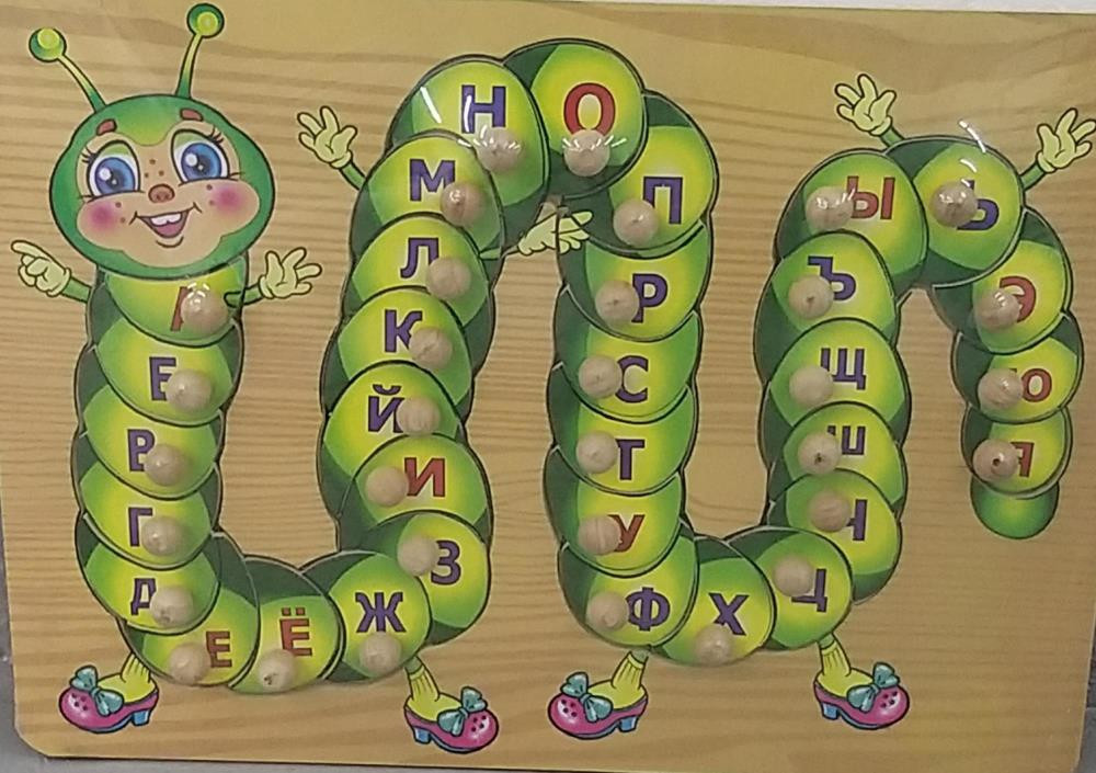 Развивающая игра новая в упаковке изучающая,деревянная гусеница со сьемными буквами
