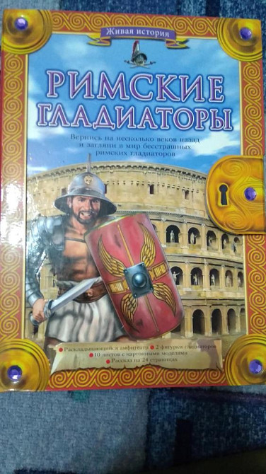 2 фигурки, коробка в виде арены, книжка, полная картонных войск. Книжка новая(все картинки на месте)