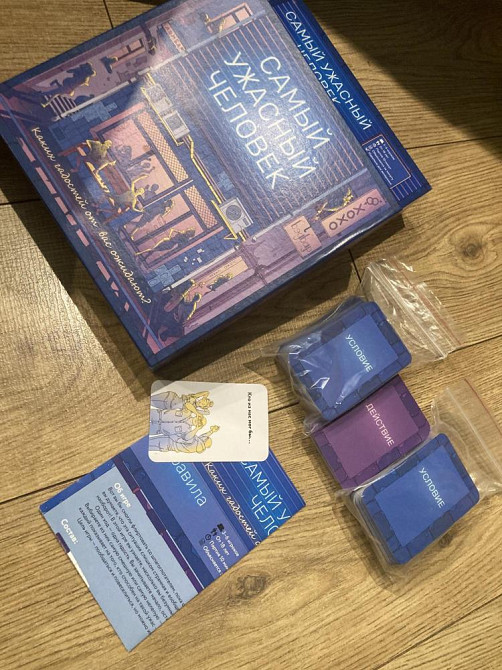 Насколько хорошо вы знаете своих друзей? А они вас? В настольной игре "Самый ужасный человек" участникам предлагается сознаться во всех тайных желаниях и проверить крепкие узы дружбы! Цель игры – общение, веселье и воображение. Каждый ход необходимо комбинировать карты, составляя нелепую гадость и затем выбирать игрока, который по вашему мнению смог бы совершить подобное. Например, пройтись голым по выставочному пространству или же в костюме супергероя испортить ребёнку мороженое!