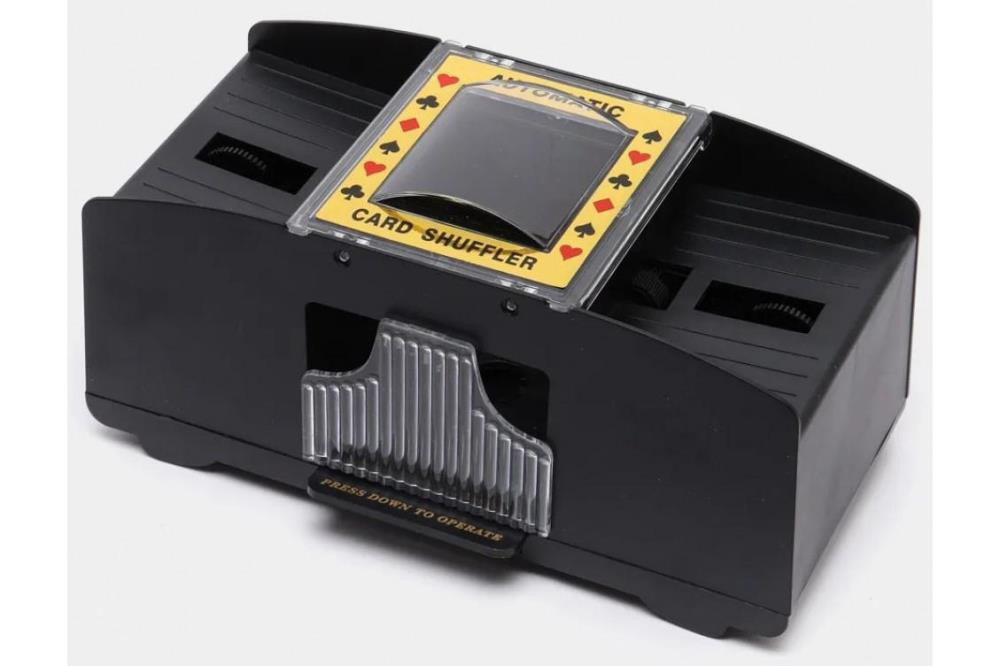 Шафл-машинка неотъемлемая часть любой игры в покер. Она быстро и качественно перемешает вам карты. Также это исключает моменты с жульничеством во время тасовки карт. Automatic Card Shuffler – это залог хорошей и честной игры. Машинка работает от 4 батареек типа «АА» (в комплект не входят).