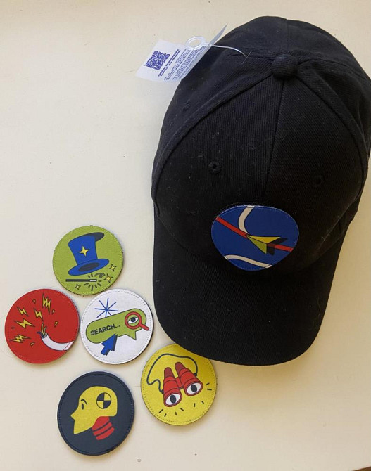Бейсболка со сменными стикерами на липучке — игра в 6 Шляп Мышления по методу Эдварда Де Боно для обсуждения или брейншторма.