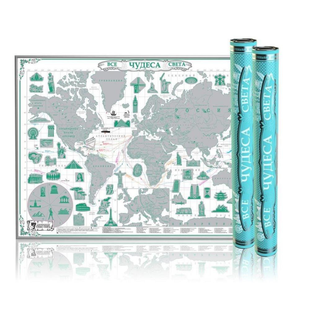 Скретч-карта мира "Чудеса света" Mint Edition в круглом тубусе. Абсолютно новая. Размер карты 59 на 84 см, формат А1. Цвет стираемого слоя: серебро.