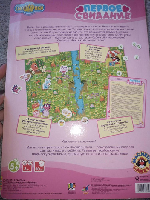 При покупке в подарок доп.игра ходилка "Смешарики".