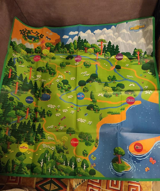 Игровой коврик, чтобы расставлять смешариков, домики.