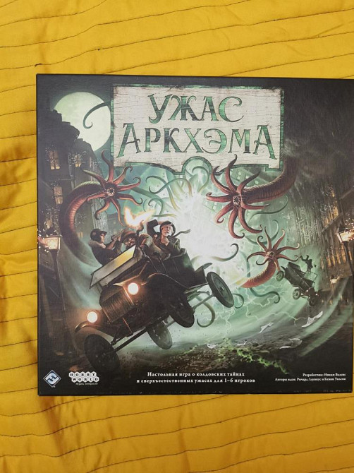 Настольная игра ужас аркхема, состояние хорошее, игралась один раз, немного порван органайзер внутри игры, все компоненты на месте