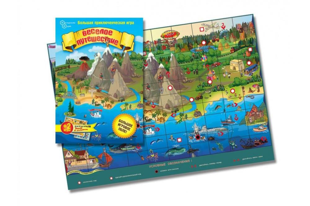 Игра состоит из большого игрового поля, четырех фишек разных цветов и кубика. Цель игры - дойти до финальной точки первому. Число ходов определяется по количеству точек на верхней части игрального кубика. Увлекательное путешествие проходит по морю и по суше. В пути игроков ждут препятствия, которые могут заставить пропустить ход, вернуться в начало игры, сделать дополнительный ход. Стрелочки указывают направление: вниз, вверх, вправо, влево.