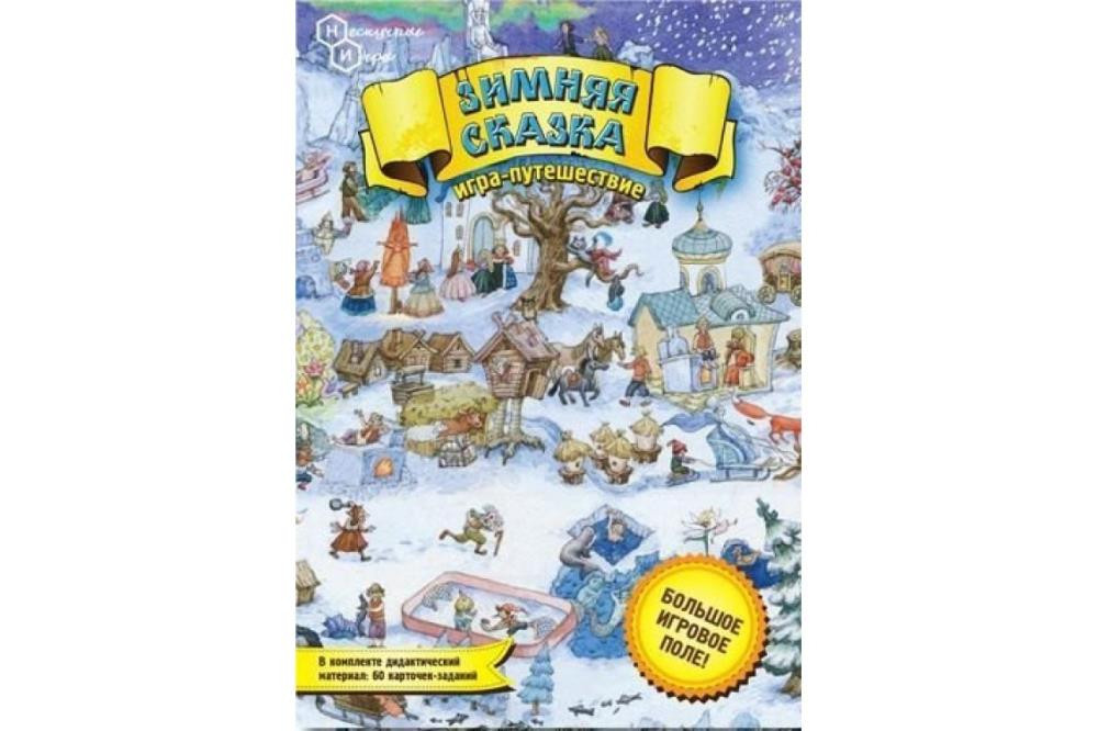 Игра «Зимняя сказка» поможет детям провести познавательно свободное время. Но без помощи взрослого им не обойтись. В игре использованы сюжеты сказок «Снежная королева», «Снегурочка», «12 месяцев», «Мороз Иванович», «Лиса и волк», «По щучьему веленью», «Приключения Незнайки и его друзей», «Сказка о царе Салтане», «Сказка о Золотом петушке», «Колобок», «Приключения барона Мюнхгаузена», «Кот в сапогах», «Конек-горбунок», «Три поросенка», «Буратино», «Чипполино». Если ребенок не знаком с сюжетом, расскажите ему сюжет сказки или предложите ему вместе почитать книгу. Предложите ребенку отыскать героев «зимних» сказок и героев «летних» сказок. Обратите внимание на то, что герои «зимних» следуют сюжету своей сказки, в то время как герои «летних» - участвуют в зимних забавах. Предложите ребенку ответить на вопрос, почему та или иная ситуация на карте вызывает ускорение или замедление хода.
