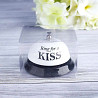 Настольный звонок белого цвета с надписью Ring for a kiss. Хороший подарок для "второй половинки", для знакомой пары или себе в семью, чтобы оповещать о времени для любви. Сделан из металла, диаметр 7.5 сантиметра, изящная кнопка звонка. Звенит громко. Поставляется в прозрачной коробочке.