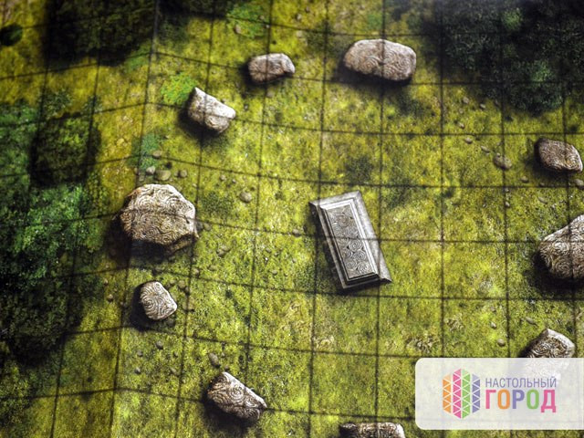 Игровое поле "Дремучий лес" для настольной ролевой игры Pathfinder RPG - это ламинированная двусторонняя тактическая карта, позволяющая ведущему удобно разыгрывать игровые ситуации, если герои попадают в лесную чащу.